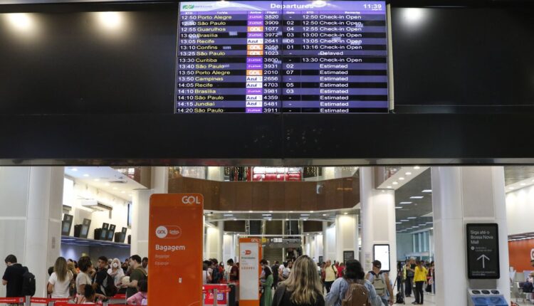 É recomendável que os passageiros cheguem com antecedência no terminal aéreo e verifiquem o status do voo no site do aeroporto ou com a companhia aérea..