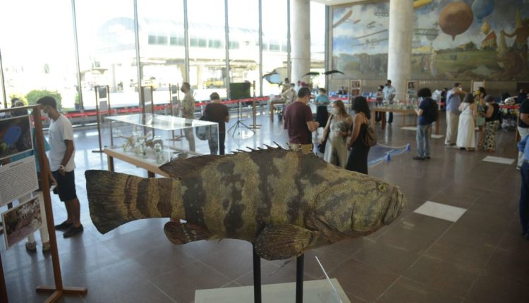Os destaques são os exemplares taxidermizados, popularmente chamados de “empalhados”, como as aves marinhas atobá-marrom e fragata e o peixe mero com mais de um metro de comprimento. A mostra traz ainda artefatos arqueológicos como machados de pedra polida e cerâmicas, que registram a presença indígena tupi-guarani no local desde o século 15.