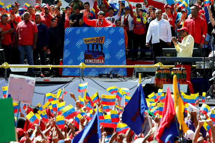 Por Agência Brasil Brasília – O presidente da Venezuela, Nicolás Maduro, discursou na tarde de hoje (23) para apoiadores na capital Caracas. Em mais de uma hora de pronunciamento, Maduro criticou a ajuda humanitária oferecidas pelos país. Ele classificou, Juan Guaidó, autodeclarado presidente encarregado, de “títere” (marionete) do governo norte-americano” que quer intervir na Venezuela, para ter acesso à exploração de riquezas minerais disponíveis no país, como o petróleo”. O presidente atacou também os presidentes da Colômbia, Ivan Duque, e dos Estados Unidos, Donald Trump.