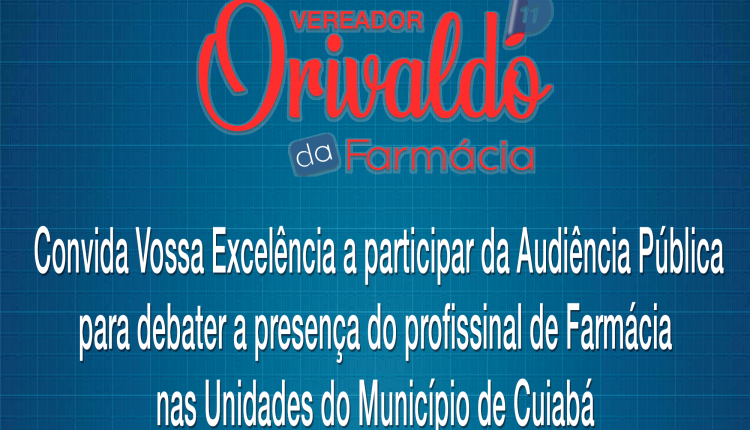 O vereador Orivaldo da Farmácia convida o profissional em Farmácia e toda a comunidade a participar da Audiência Pública dia 13 de dezembro, para debater a presença do Profissional de Farmácia nas Unidades do Município. Você é nosso convidado.