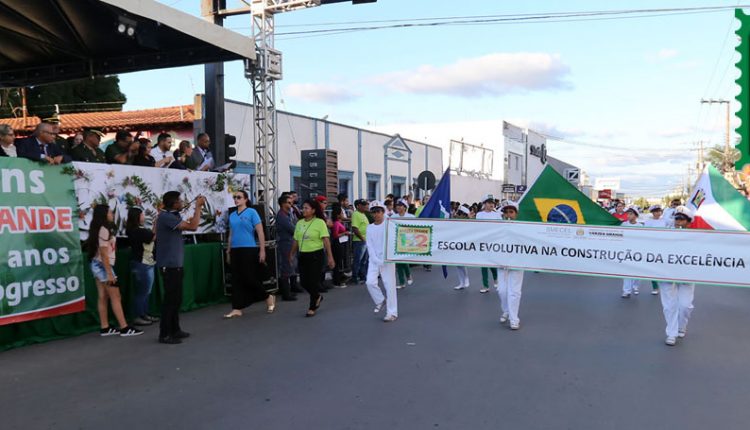 A “Escola Evolutiva na Construção da Excelência” foi o tema de destaque do tradicional Desfile Cívico-militar deste ano na Avenida Couto Magalhães, em homenagem aos 152 anos de Fundação de Várzea Grande. Carros alegóricos, Fanfarras e vários pelotões de estudantes desfilaram contando ao público e autoridades presentes, através de adereços e alegorias em evolução na avenida, um pouco da trajetória exitosa das ações desenvolvidas pela rede pública municipal de Ensino de Várzea Grande.