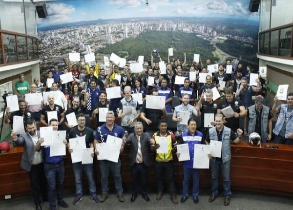Cerca de 40 motociclistas e motoqueiros lotaram o plenário do Legislativo Cuiabano e foram agraciados com moções de aplausos. O parlamentar abriu a sessão solene lembrando que começou a trabalhar como camelô utilizando uma motociclista. “Aquela motinha ainda está lá no shopping popular”, observou.