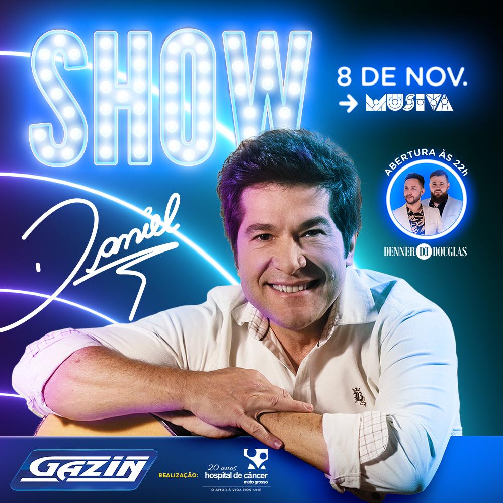 Adriele Rodrigues – Um show que encantará corações e ainda ajudará uma grande causa. Já estão à venda os ingressos para o show do cantor sertanejo Daniel, que será realizado no dia 08 de novembro na Casa de Shows Musiva. O evento faz parte da comemoração dos 20 anos do Hospital de Câncer de Mato Grosso (HCanMT) e está sendo promovido pela Gazin.