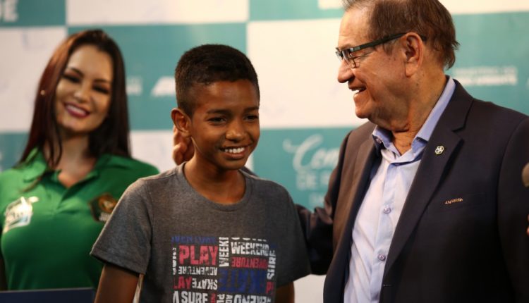Jovem Werlysson Mathias, de 14 anos, venceu o concurso de redação com o texto "Água para todo mundo", e foi premiado no intervalo da final da Copa Verde