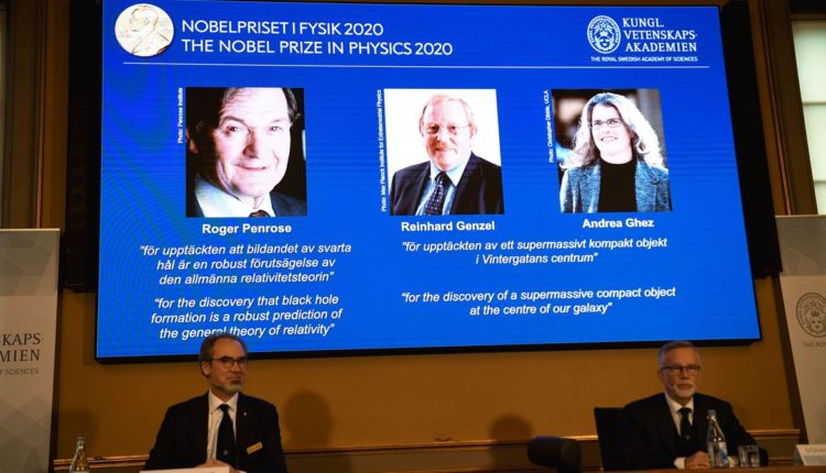 O britânico Roger Penrose, o alemão Reinhard Genzel e a norte-americana Andrea Ghez conquistaram o Nobel de Física de 2020 por suas descobertas sobre um dos fenômenos mais exóticos do universo, o buraco negro, informou a entidade que concede a premiação nesta terça-feira (6).