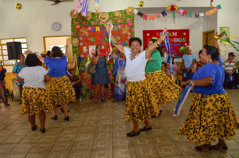 Essa contagiante disposição pode ser contemplada no rosto da senhora Maria José Arruda, de 74 anos. Participante assídua das atividades da unidade, a alegre Maria, que se descreve como uma “jovem idosa”, vestida a caráter, mostrou suas habilidades de dançarina e “rasto” os pés pelo colorido salão.