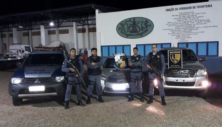 Um dos veículos foi recuperado com o apoio do Grupo Especial de Fronteira (Gefron)