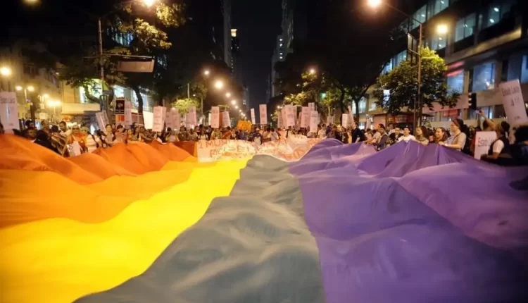 Rio de Janeiro (RJ), 28/06/2023 - Pessoas celebram o Dia Internacional do Orgulho  LGBTQIA+ na Cinelândia, região central da cidade. Foto: Fernando Frazão/Agência Brasil