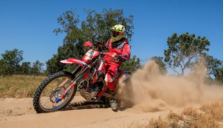 São Félix (TO) – O primeiro dia da 7ª edição do Rally do Jalapão terminou com vitória dos pilotos da equipe Honda Racing Gregorio Caselani, na categoria Moto 1, e Thiago Veloso, na Brasil. Bissinho Zavatti fechou o dia em segundo lugar na geral das motos e na Moto 2. Nesta quarta-feira (16/6), os competidores percorreram 468,90 quilômetros no total, sendo 212,30 de especiais (trechos cronometrados), entre Luís Eduardo Magalhães (BA) e São Félix (TO).