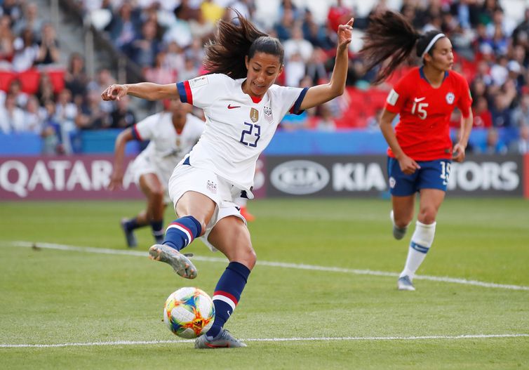 Os EUA selaram sua terceira final consecutiva com uma vitória sobre a Inglaterra por 2 a 1, em Lyon, na abertura das semifinais na terça-feira (2). Os gols foram marcados por Christen Press e Alex Morgan. Ellen White descontou para as inglesas.