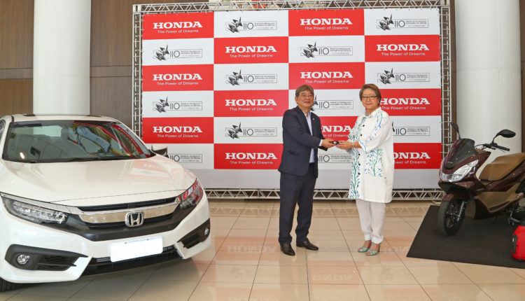 Com a finalidade de contribuir com a ação, que visa arrecadar recursos para a celebração dos 110 anos da imigração japonesa no País, a empresa anunciou hoje, durante evento para convidados em São Paulo, a doação de um Civic Touring, uma scooter PCX DLX e um Gerador EU 10.