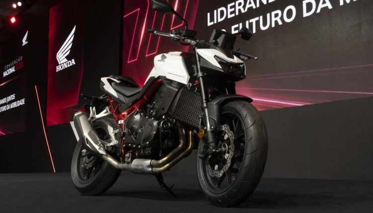 A poderosa streetfighter chega no primeiro trimestre de 2026 para complementar a família Hornet. O modelo será oferecido em duas configurações com destaque para a versão SP que traz itens exclusivos como design único, além de quickshifter, suspensão Ohlins e freios Brembo.