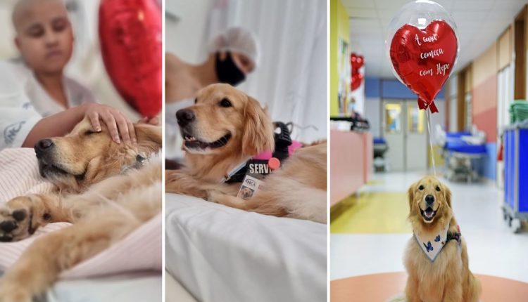 “Além de muito dócil, Hope recebe adestramento específico para o trabalho desde os primeiros meses de vida. Tanto empenho e cuidado na criação é recompensado quando observamos que a presença dela ajuda a aliviar o estresse e traz mais leveza para o ambiente do hospital”, disse Bianca.