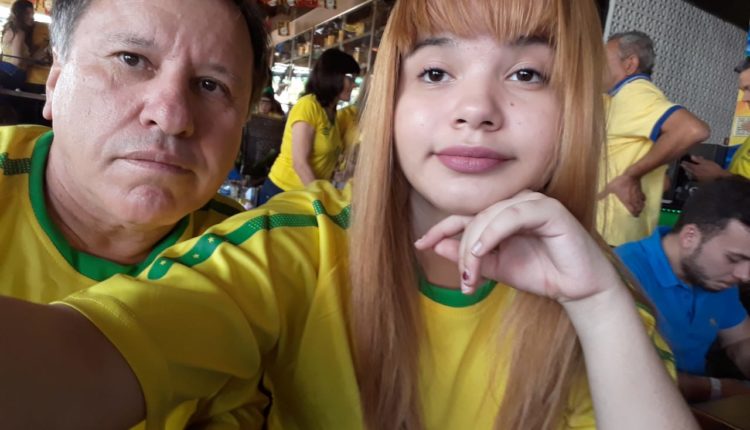 Jogo do Brasil mobiliza famílias. Em Cuiabá, pai e filha vibraram com gols que desclassificaram o México