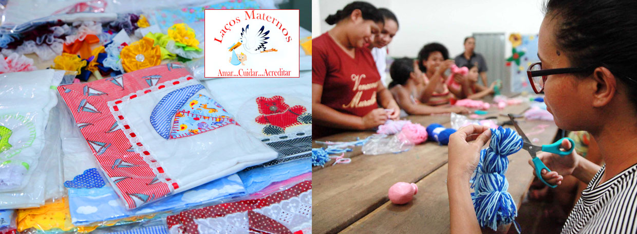 “Laços Maternos têm por finalidade também o fortalecimento afetivo entre mãe e filho durante a gestação e pós-nascimento do bebê. Cada unidade oferece 30 vagas por polo com duração de quatro meses. Nos encontros realizados semanalmente são desenvolvidas oficinas de confecção enxoval do bebê, além de atividades socioeducativas, palestras, artesanato e acompanhamento de saúde com equipe multidisciplinar com pré-natal. Sempre que um bebê está sendo gerado, uma mãe também está se desenvolvendo, se preparando para nascimento. Esta “dupla gestação” é fundamental para a formação de um vínculo afetivo saudável entre a mãe e o bebê”.