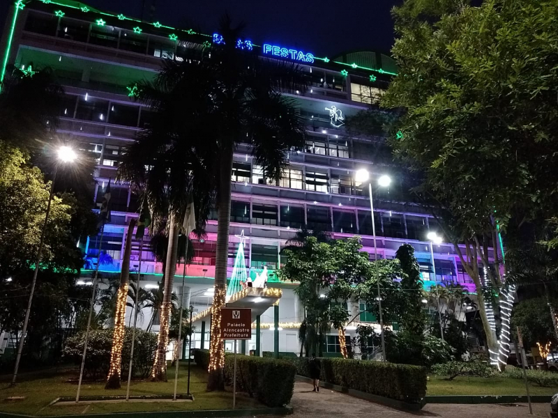 Magia do Natal dá novo brilho ao prédio da Prefeitura de Cuiabá