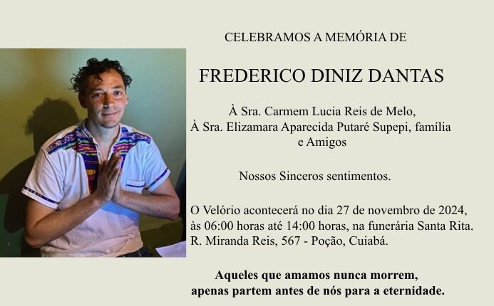 Engenheiro florestal Frederico Dantas veio a óbito na tarde de ontem (25), em função de câncer. Faleceu em casa, ao lado de amigos e familiares.