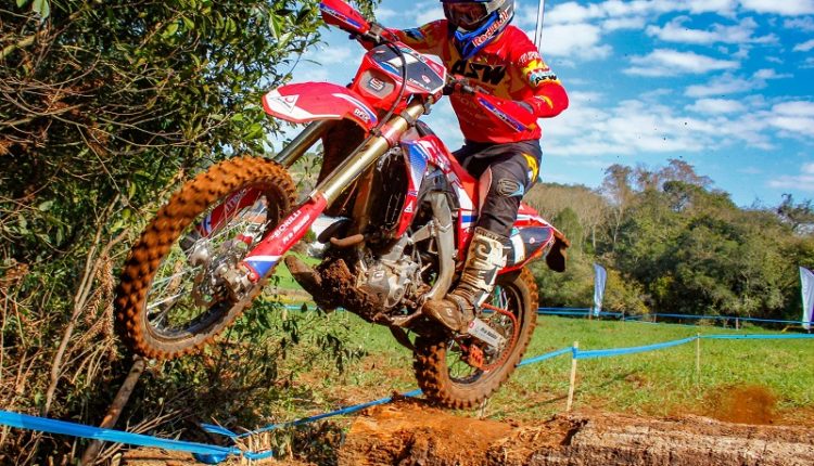 Novo Horizonte (SC) – A prova de Novo Horizonte, no Oeste de Santa Catarina, a terceira do calendário 2021, fez sucesso entre os participantes do Campeonato Brasileiro de Enduro. O evento é inédito na região e trouxe trilhas de alto nível técnico, marcadas por chão liso e raízes aparentes de árvores, além do frio, também típico do local. O piloto capixaba Bruno Crivilin, da equipe Honda Racing, foi o vencedor da categoria E1 – cuja liderança segue com o catarinense Loandro Anton (Pro Tork). Já na E2, o destaque foi o mineiro Rômulo Bottrel (Pro Tork), que com a vitória assume a liderança no ranking da classe.