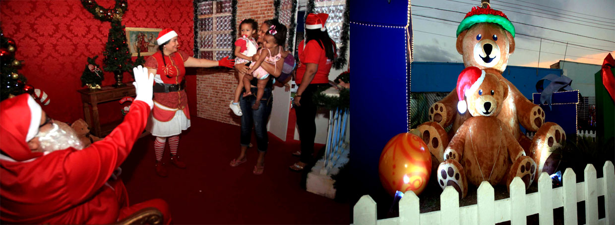 Keli França Silva, moradora do bairro Jardim Esmeralda, levou os gêmeos Gabriel Felipe e Felipe Gabriel, 6 anos, para participar da programação de natal, e antes da apresentação dos meninos aproveitou para contemplar a decoração natalina, além de tirar fotos com os personagens. “Os meninos ficaram encantados com tudo o que encontraram aqui na praça, até eu que não sou criança me emocionei”.