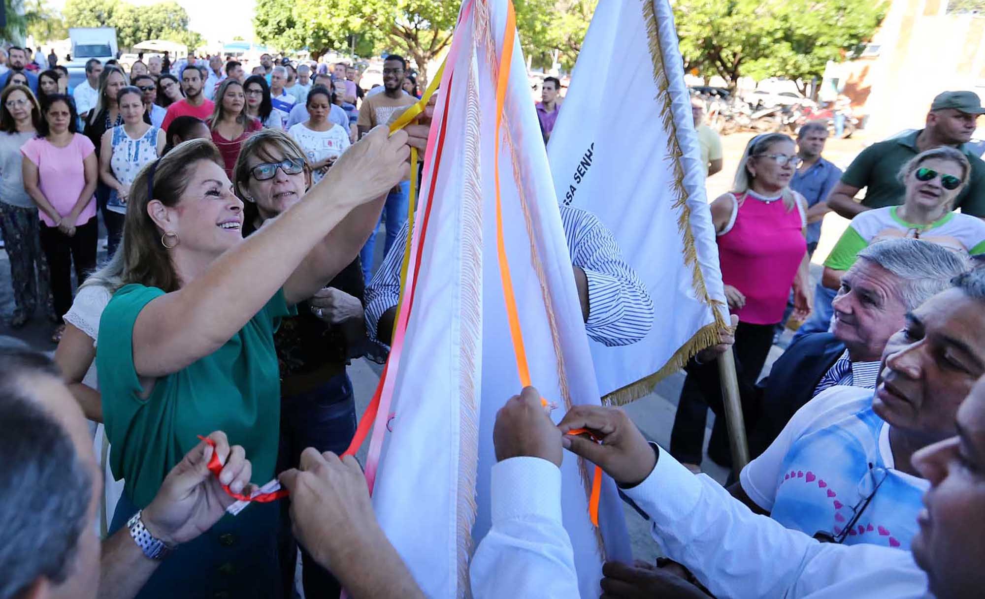 “Mais que uma tradição, a presença da bandeira no Paço Couto Magalhães é um momento de emoção, fé e religiosidade. Estou feliz em poder participar dessa comemoração à padroeira da nossa cidade, é um momento de renovarmos a fé e ao mesmo tempo, pedir a intercessão de nossa senhora para que continuemos firmes em nosso propósito que é levar desenvolvimento a esta cidade e oportunidades a toda a população. Esta é uma festa abençoada e marcante para a nossa cidade. É uma honra participar deste momento sagrado e também preservar a cultura varzeagrandense na sua religiosidade”, destacou a prefeita.