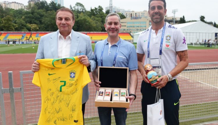 Anatoly Pakhomov foi recebido por Rogério Caboclo, chefe de delegação da Seleção Brasileira na Rússia e o CEO da CBF, e pelo coordenador de seleções, Edu Gaspar