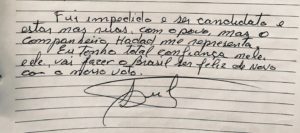 Por site PT – “Fui impedido de ser candidato e estar nas ruas, com o povo, mas o companheiro Haddad me representa. Eu tenho total confiança nele. E ele vai fazer o Brasil ser feliz de novo com o nosso voto”