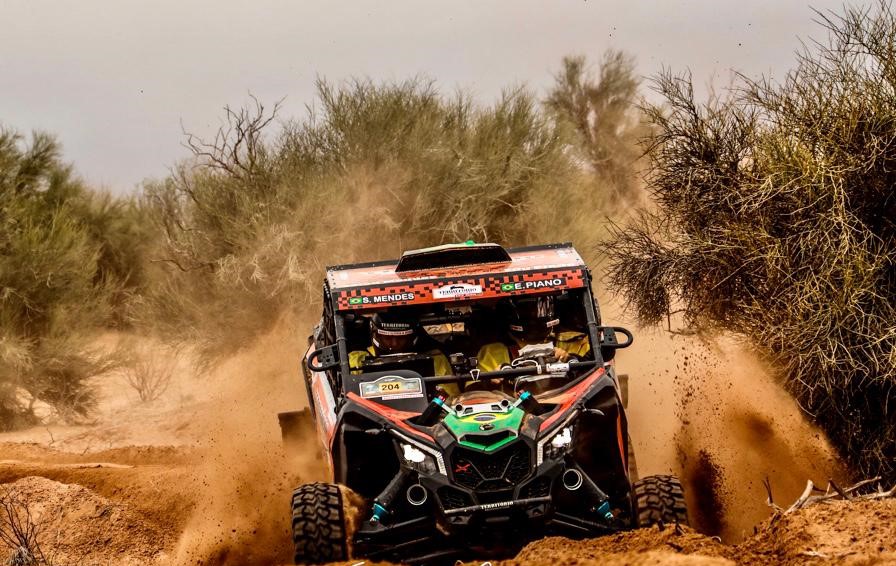 Já Piano/Mendes que largaram de Chilecito (11/2) na frente dos seus companheiros de equipe tiveram problemas na última Especial do dia de 159 km entre dunas, pedras e rios secos.  “Todos os dias foram desafiantes e difíceis, mas nesse tivemos de nos superar, não quanto a pilotagem que me diverti o dia inteiro, mas diante de alguns problemas que tivemos, como quebra da homocinética e a navegação que foi complicada e nos perdemos em alguns waypoints (pontos de passagem obrigatórios) mas o importante é que completamos até o momento todas as quatro etapas”, diz Piano (Tatuí/SP).