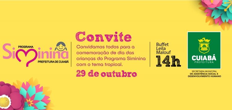 Ruan Cunha – A Prefeitura de Cuiabá realiza o encerramento das festividades do Mês das Crianças, nesta segunda-feira (29) com uma tarde de lazer para as mais de mil meninas assistidas pelo Programa Siminina. O evento acontece no Buffet Leila Malouf, das 14h às 17h.