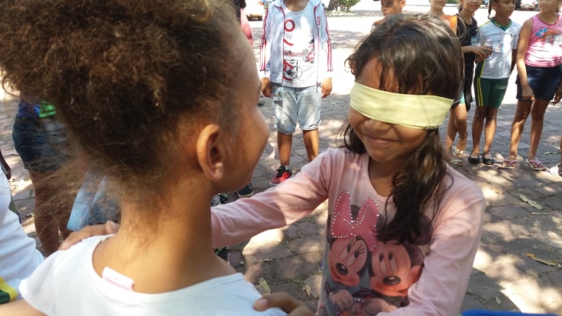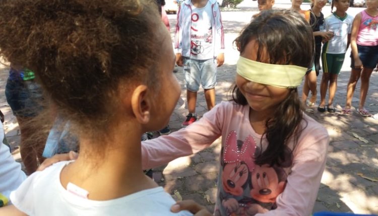 A Escola Municipal de Educação Básica de Campo (EMEBC) em questão leva o programa bem a sério, a partir de brincadeiras e projetos interativos que promovem o desenvolvimento da cidadania de maneira lúdica e imperceptível. Ao aplicar a didática ao longo de todo o ano letivo, os alunos dos 5º anos aprendem a perceber seus coleguinhas e demais pessoas por uma outra perspectiva, desenvolvendo uma sensibilidade aguçada em relação às adversidades e particularidades vividas por cada um. E em uma aula diferente, a unidade municipal Hebert de Souza levou seus pequenos para uma nova atmosfera, cercada pelo verde e distante das tradicionais salas de aula. A quinta-feira foi marcada por um passeio no pátio do Restaurante Sinuelo – localizado na BR-364 -, onde as professoras envolveram suas turmas em atividades sobre as limitações na visão, audição e locomoção – referentes ao módulo dois, intitulado “Ser Diferente é Legal”.