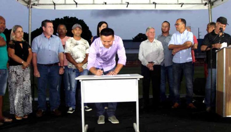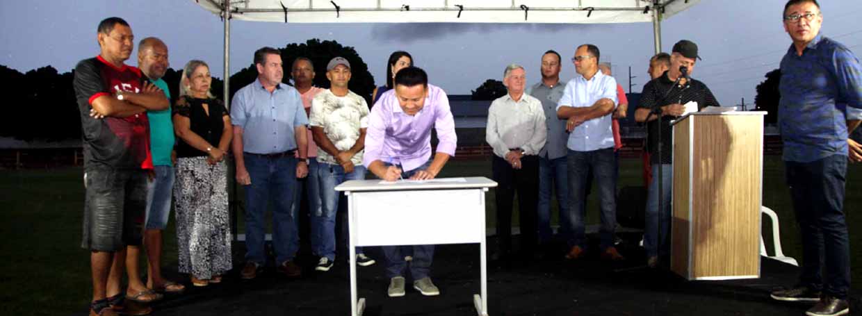 O prefeito em exercício José Aderson Hazama juntamente com o secretário de Educação, Cultura, Esporte e Lazer, Silvio Fidelis e do superintendente de Esportes, Jadir Pereira assinaram a Ordem de Serviço para reforma do Estádio Municipal Benedito Laurindo de Souza, localizado no Cristo Rei. As obras estão orçadas em cerca de R$ 2 milhões recursos oriundos do Tesouro Municipal.