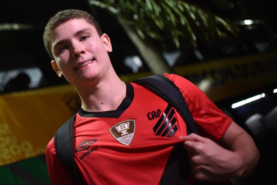 Vinicius durante o desembarque do Athletico Paranaense