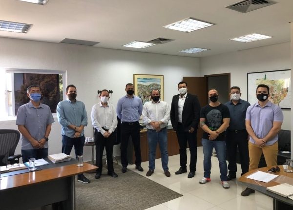 Na manhã dessa segunda-feira, o Vereador Vinicyus Hugueney foi recebido juntamente com os representantes das academias de Cuiabá, pelo Secretário de Desenvolvimento Econômico César Miranda, o Secretário de Esporte Cultura e lazer, Allan Kardec e o presidente da Desenvolve MT Jair de Oliveira Marques.